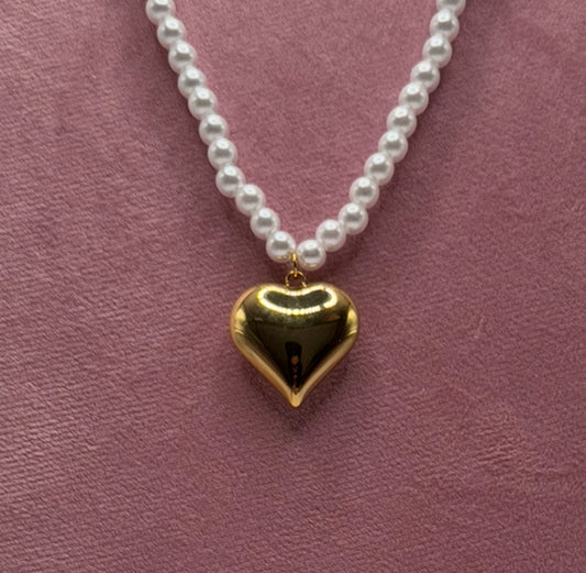 COLLANA DI PERLE CON CUORE 3D ACCIAIO