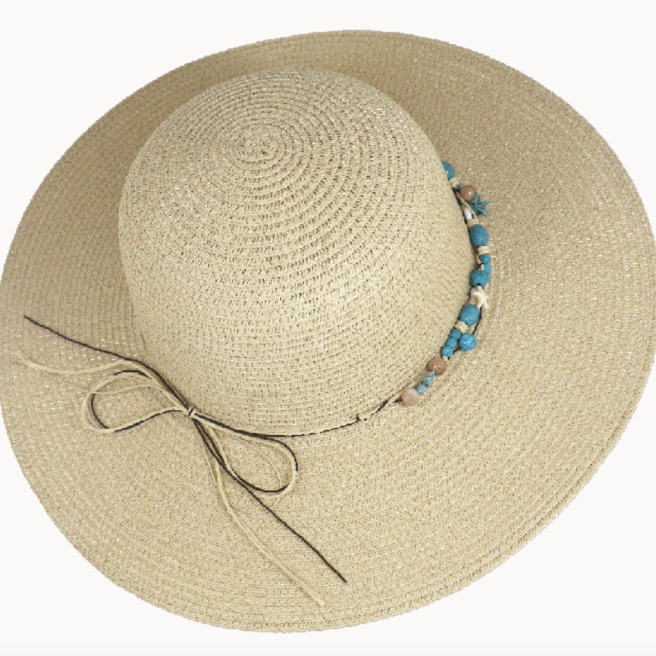 PAMELA CONCHIGLIA in fibra di carta intrecciata impreziosito da un delicato nastro con perle e conchiglie. Taglia unica, circonferenza regolabile..