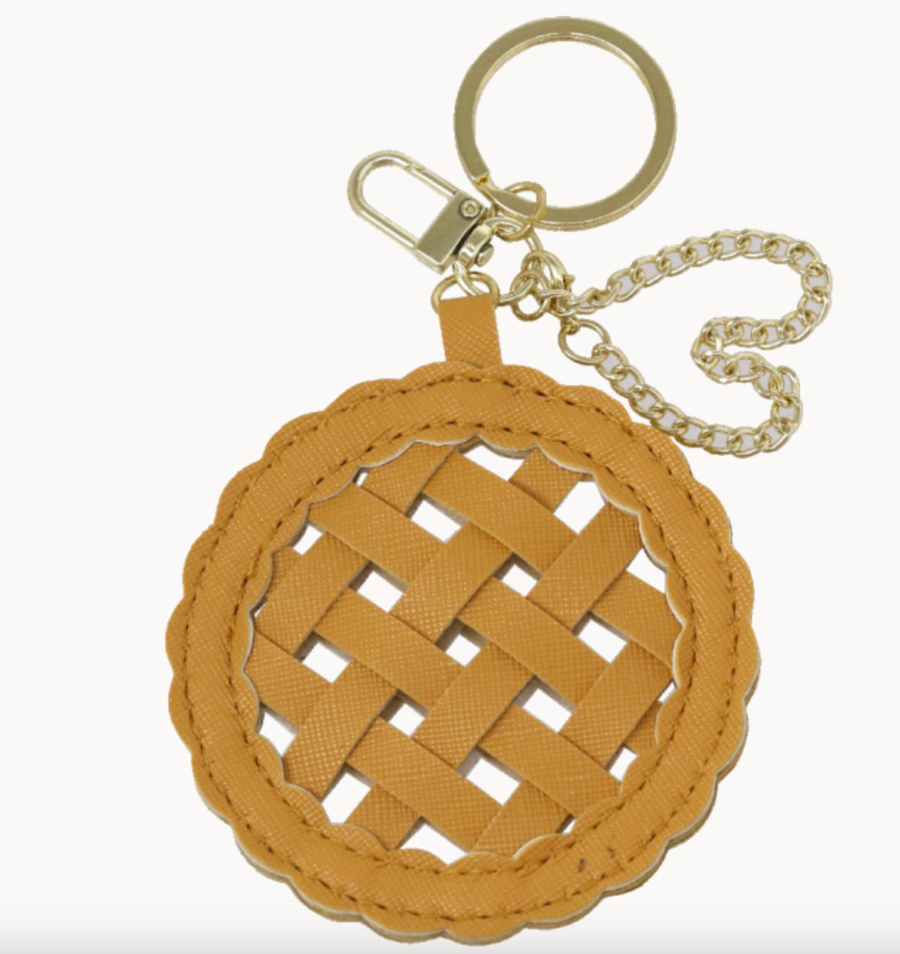 PORTACHIAVI CROSTATA IN PELLE SINTETICA. DA USARE SIA COME PORTACHIAVI O COME ACCESSORIO PER LA BORSA GRAZIE AL GANCIO E ALLA CATENA CHE PERMETTONO DI LEGARLO AD UNA ZIP O AL MANICO DELLA BORSA.
