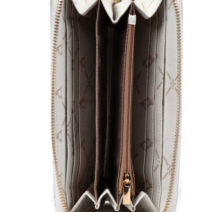 Trendy e funzionale, questo portafoglio da donna firmato L'Atelier du Sac è realizzato in similpelle effetto martellato con raffinata stampa monogramma all-over. Perfetto per l’uso quotidiano, è dotato di una pratica chiusura con zip dorata, 10 slot per carte di credito e documenti, 3 scomparti per banconote e un portamonete con chiusura a zip. Un accessorio che unisce stile contemporaneo e massima organizzazione.
