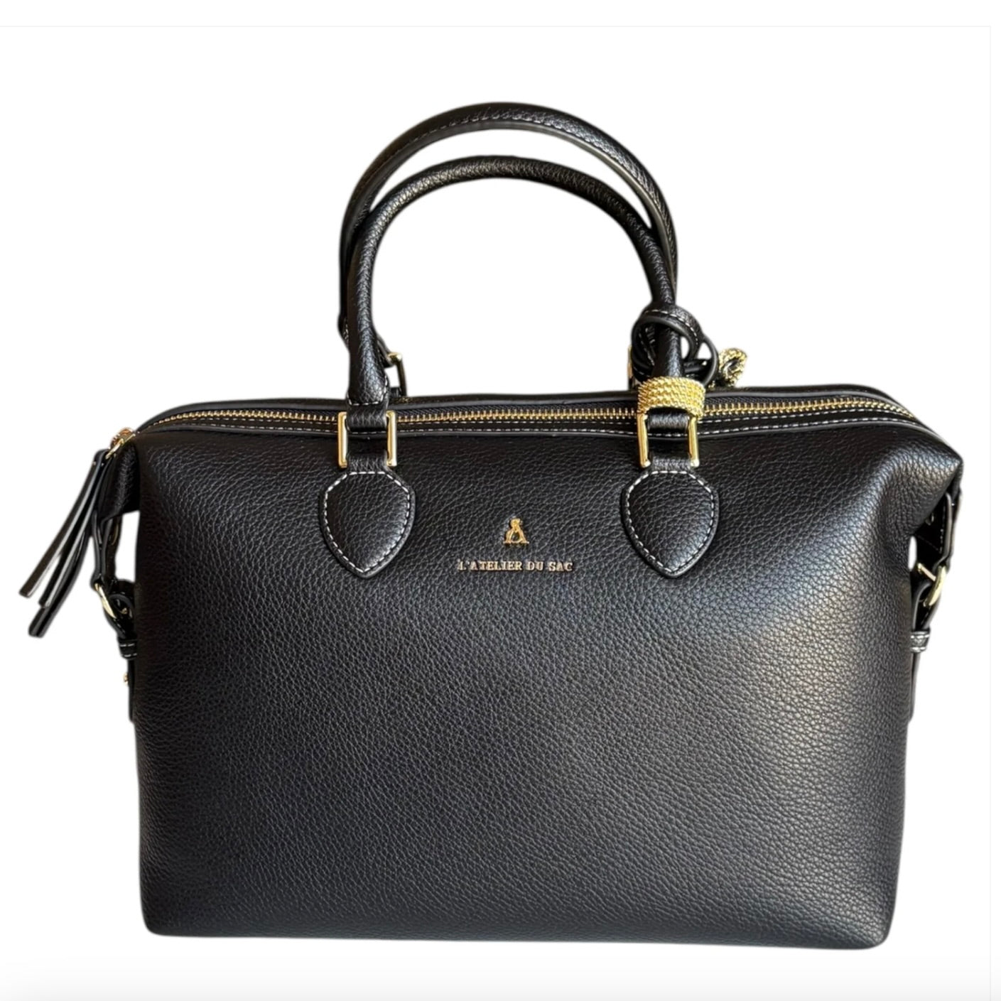 Borsa a mano e a spalla Atelier du Sac in ecopelle nera con chiusura zip. Elegante e funzionale