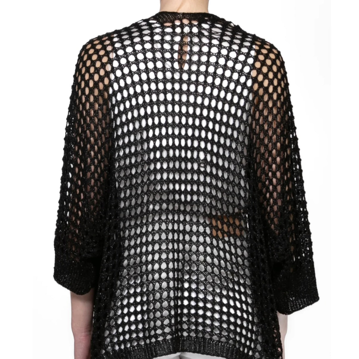 - Leggero, brillante e super chic. Il cardigan traforato in lurex unisce l’eleganza della lavorazione traforata alla luminosità del filo lurex. Perfetto per dare un tocco glam anche ai look più semplici, da indossare aperto o annodato per un effetto effortless raffinato.