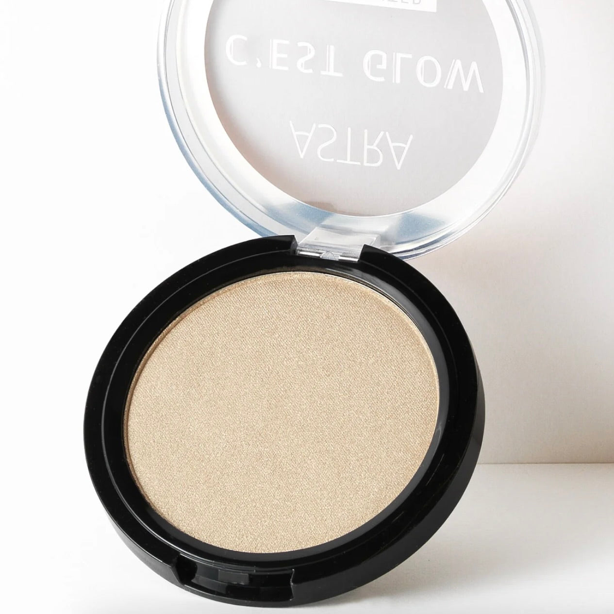 C’est Glow Highlighter è un illuminante compatto capace di creare riflessi su zigomi, arco di cupido, arcata sopracciliare ma anche clavicole e décolleté.
