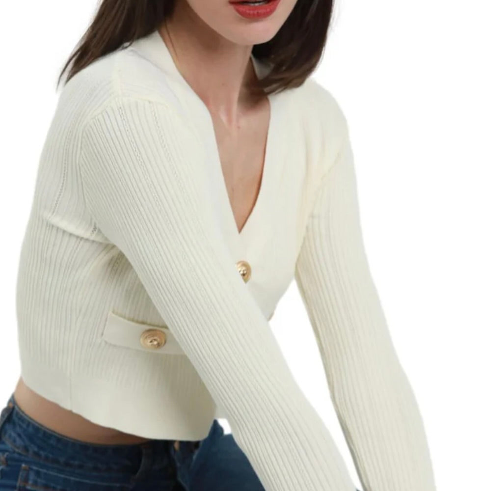Susy Mix Cardigan Crop con Due Tasche Frontali e Chiusura con Bottoni.