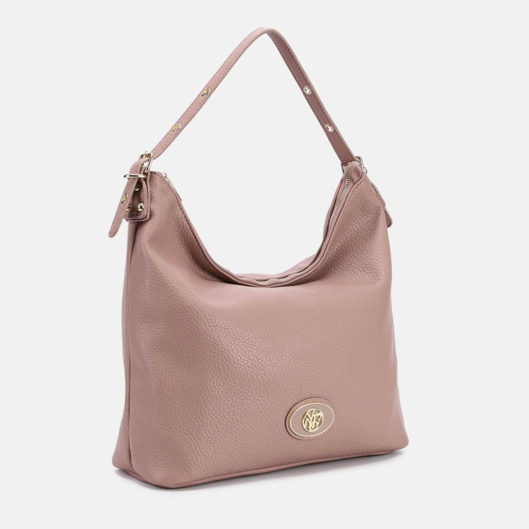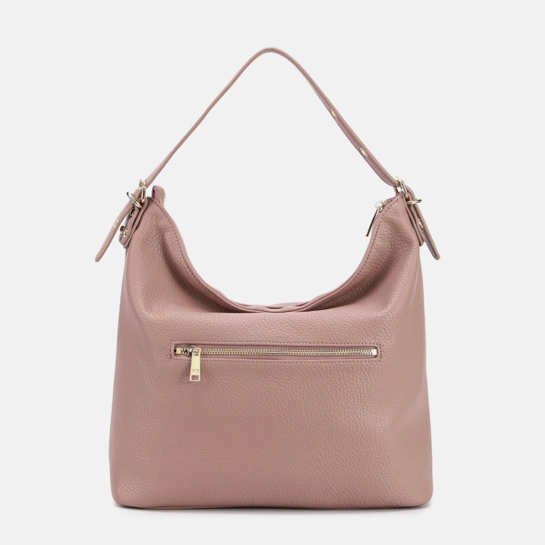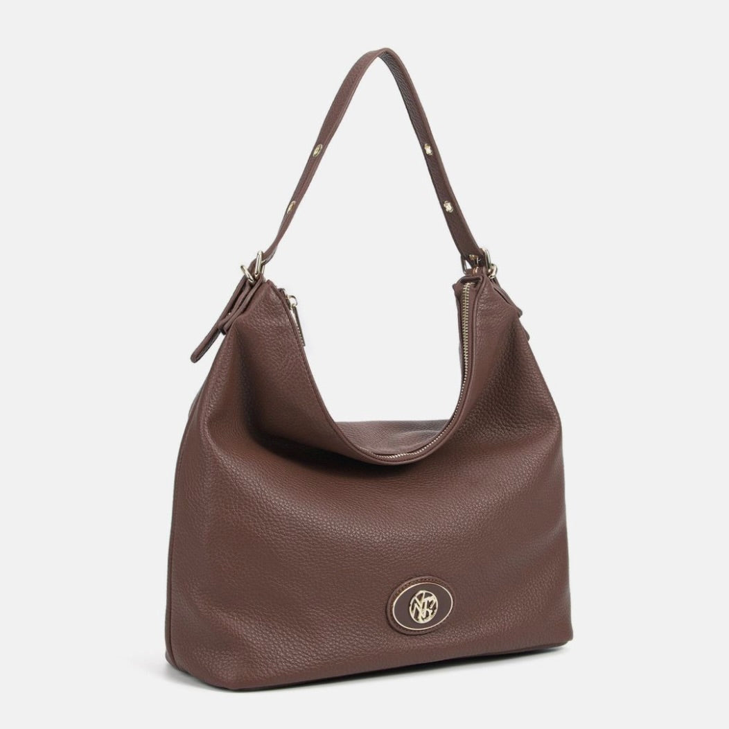Borsa hobo donna morbida e capiente, perfetta per l’uso quotidiano. Il manico singolo è regolabile tramite fibbia con fori, così puoi adattare la caduta sulla spalla in base a come preferisci indossarla. La chiusura superiore con zip protegge portafoglio, smartphone e oggetti personali durante la giornata, mentre la tasca con zip sul retro è pensata per avere subito a portata di mano telefono, chiavi o badge senza aprire la borsa.