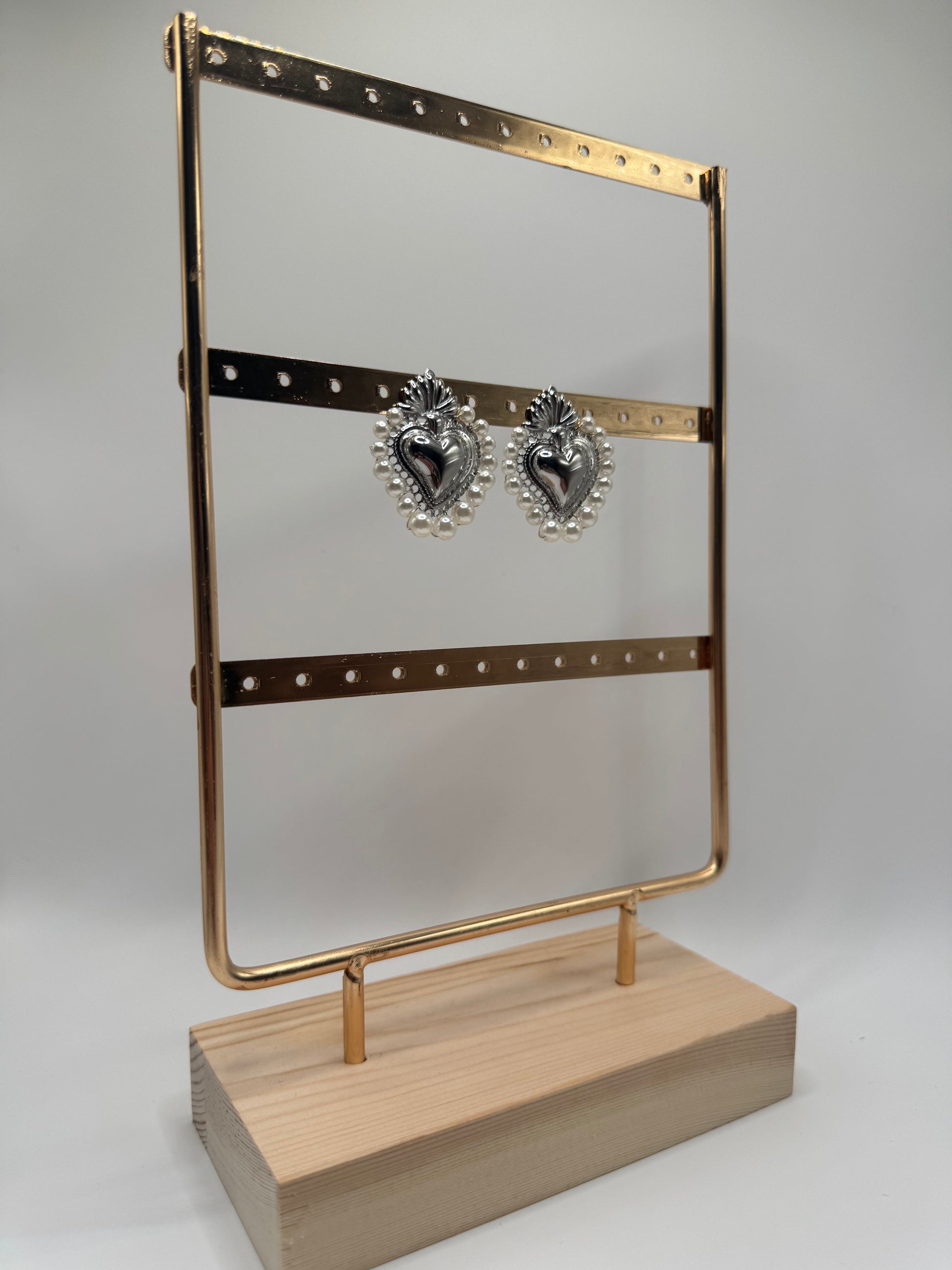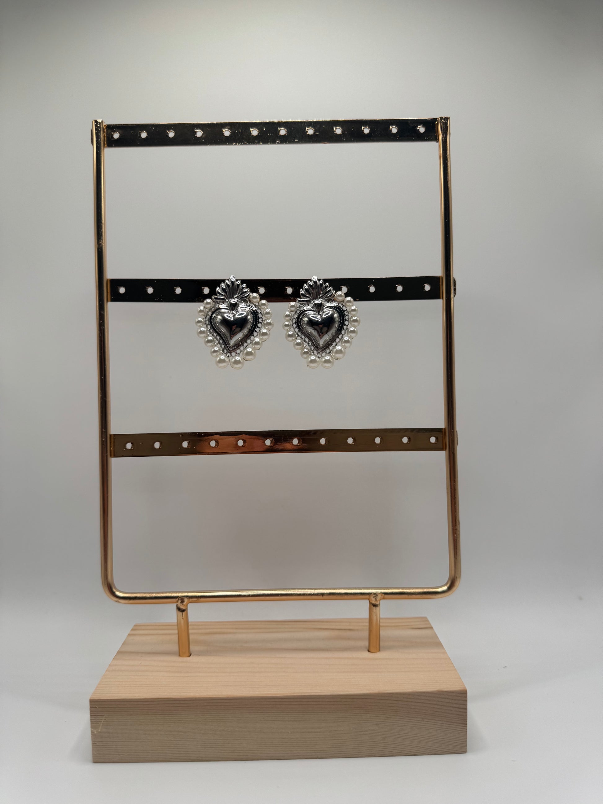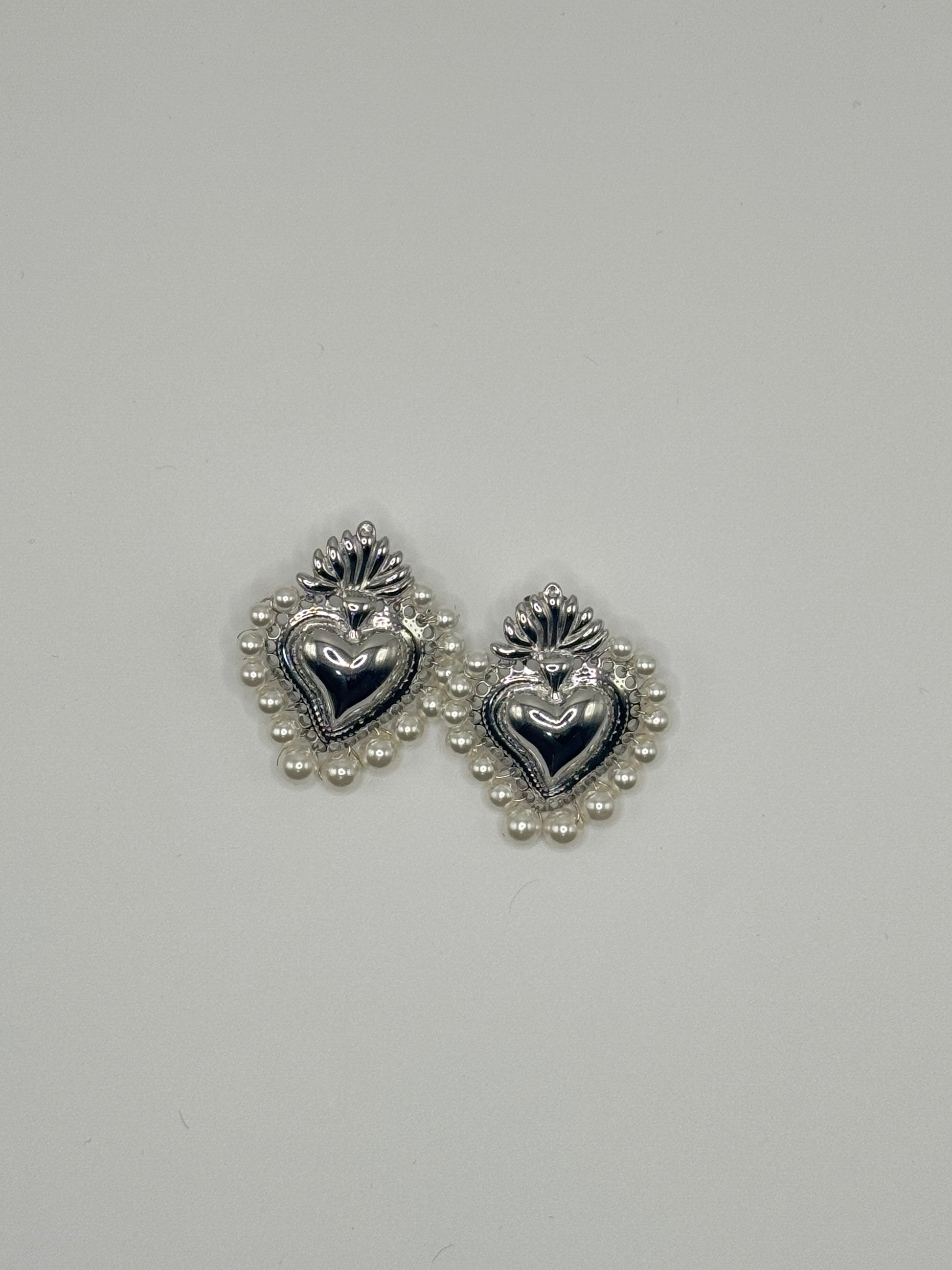 ORECCHINI GRANDI CUORE SACRO ACCIAIO CON PERLE
