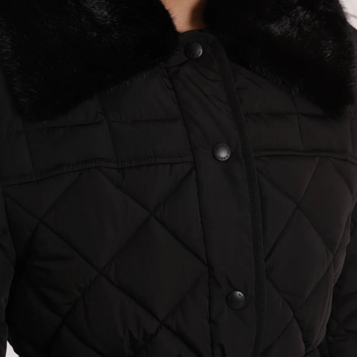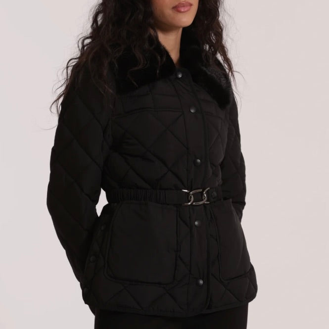 PIUMINO CORTO CON COLLO EFFETTO PELLICCIA CON CINTURA