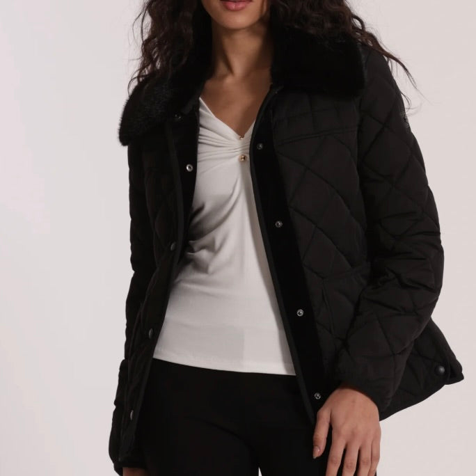 Mimì-Muà PIUMINO CORTO CON COLLO EFFETTO PELLICCIA CON CINTURA