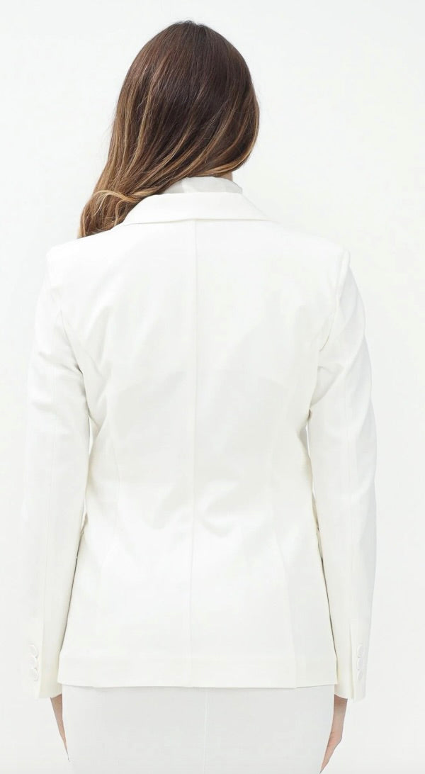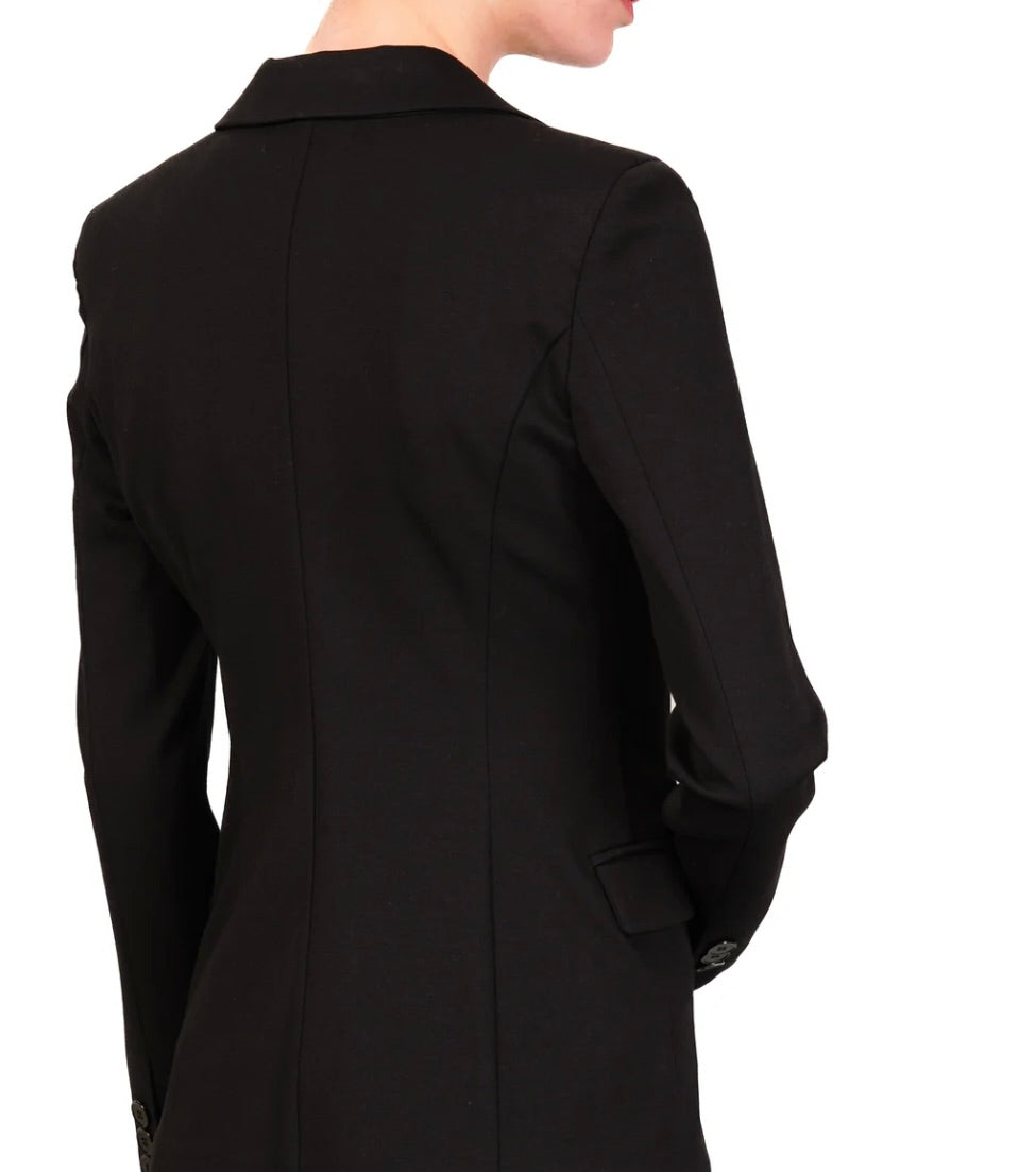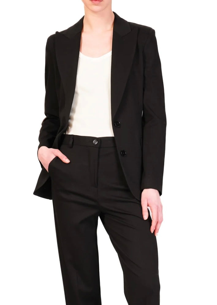 Blazer Monopetto sfiancato in punto milano. Collo con Revers. Chiusura frontale monopetto con due bottoni. Tasche a pattina frontali.