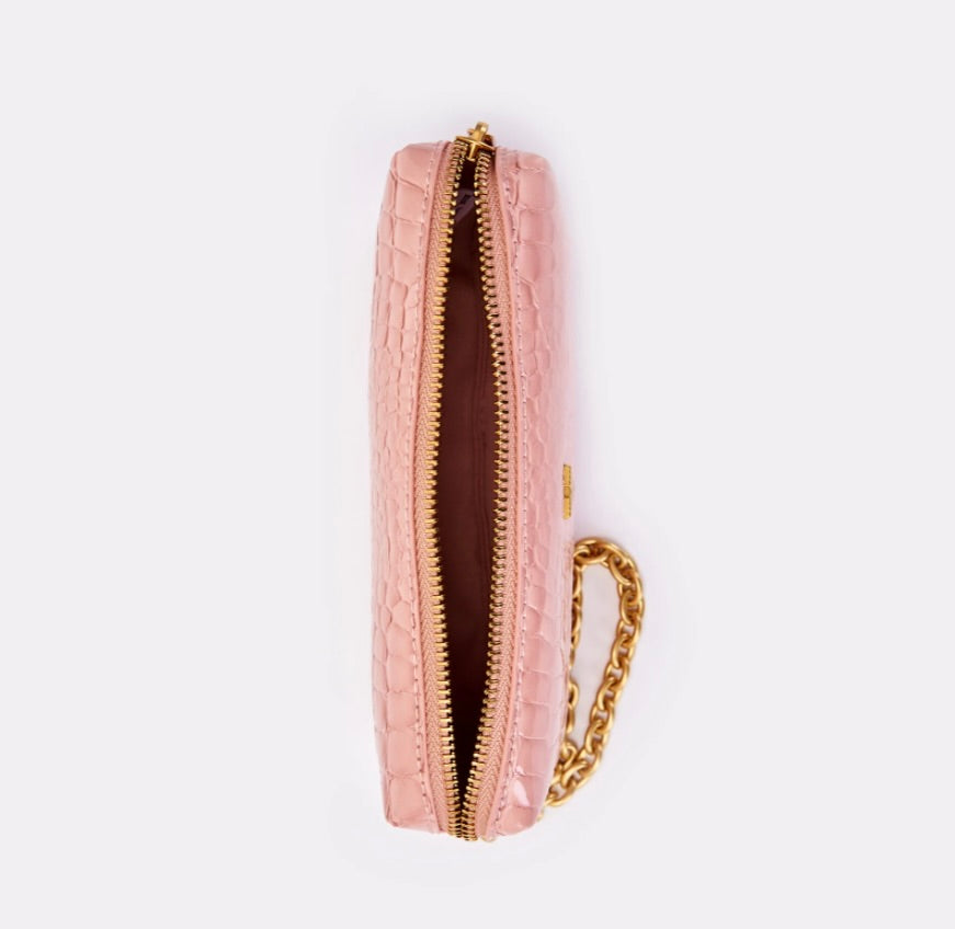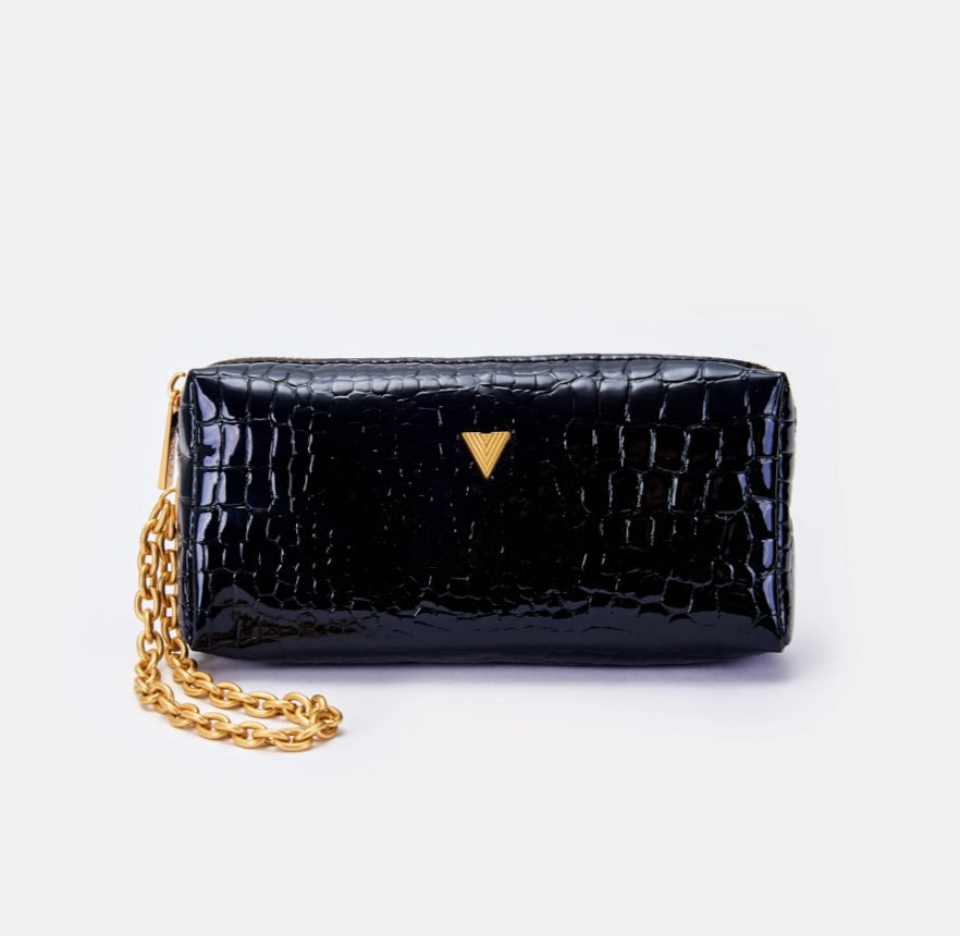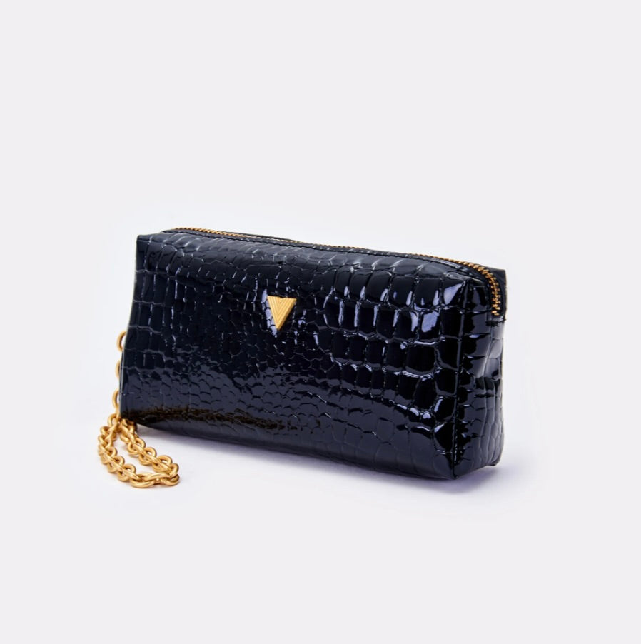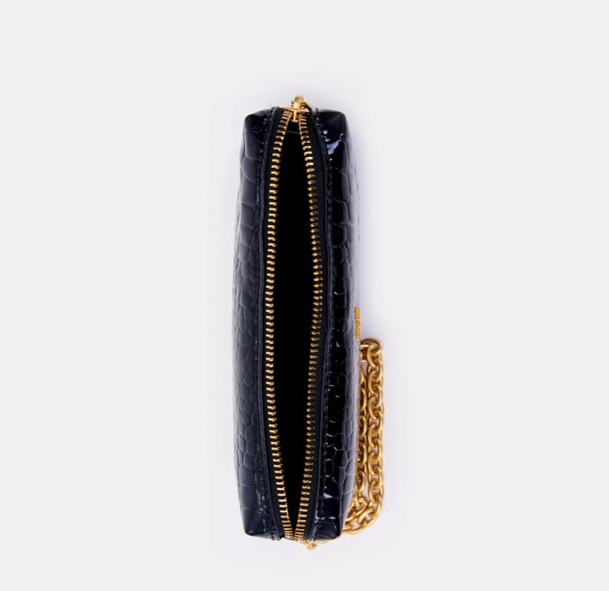 Borsa Shibuya Pocket a mano in ecopelle effetto "coco" in vernice. Chiusura con cerniera. Dettaglio fibbia V metal plate Vicolo. Dettaglio finiture anticate color oro. Tasca interna con cerniera e taschina piatta.